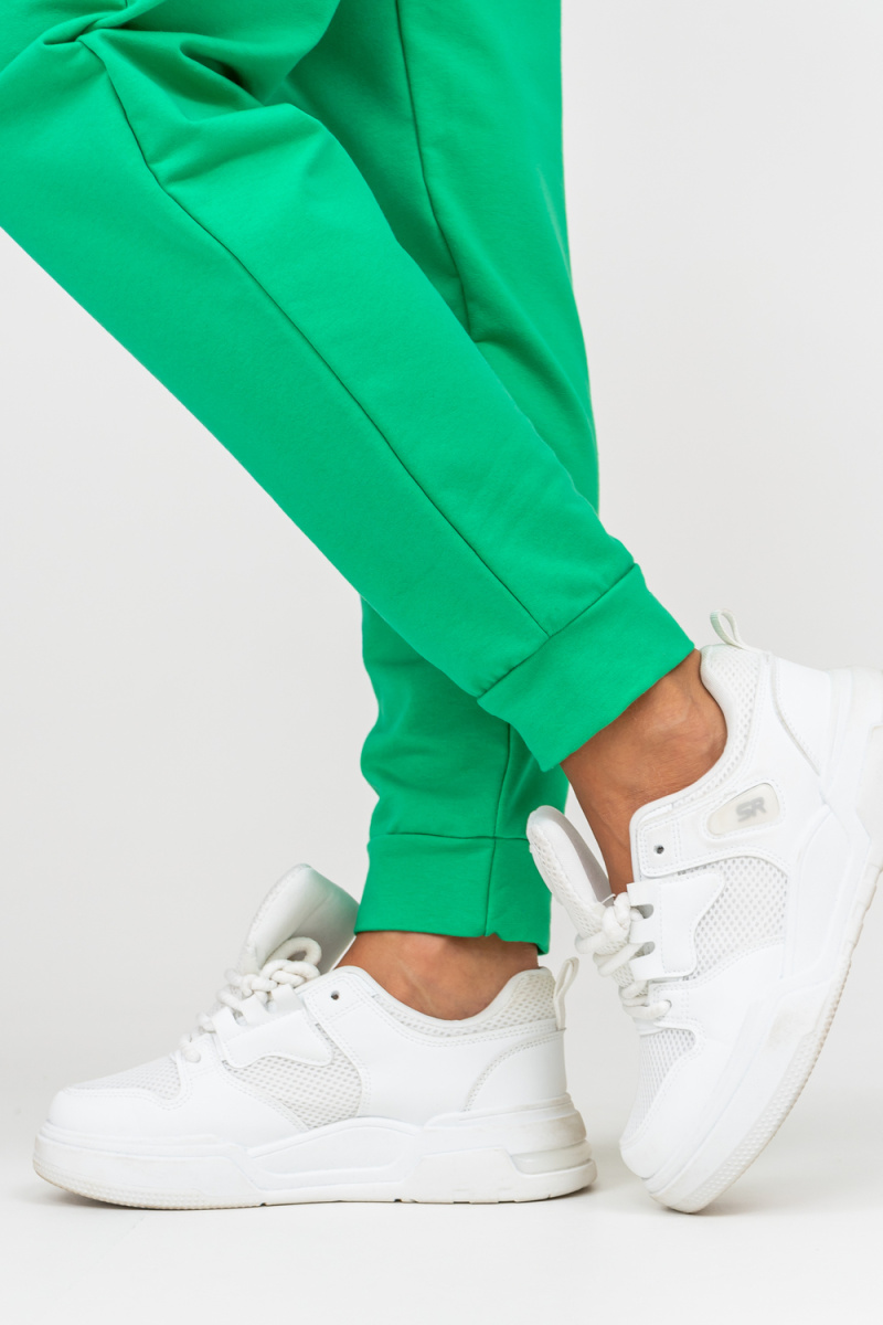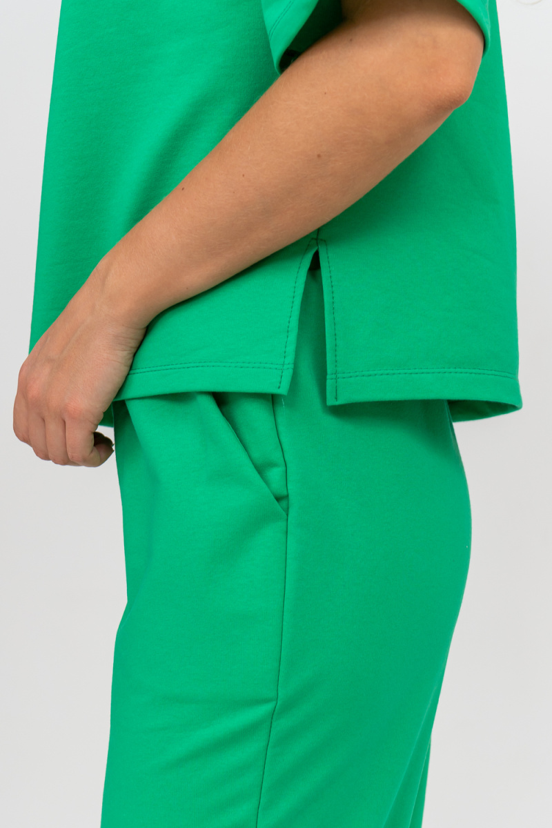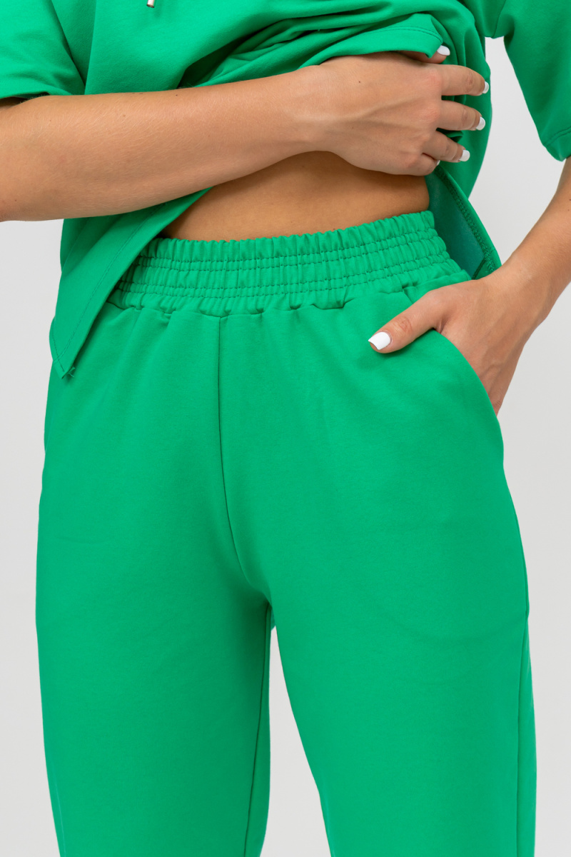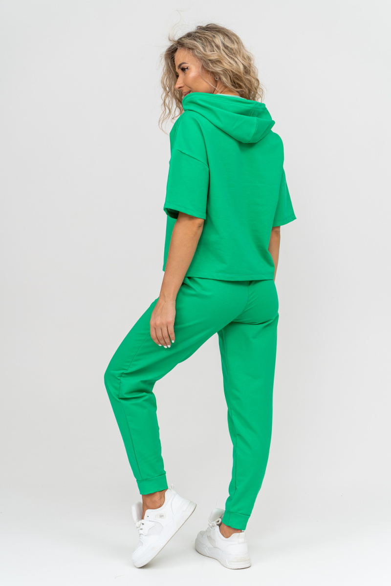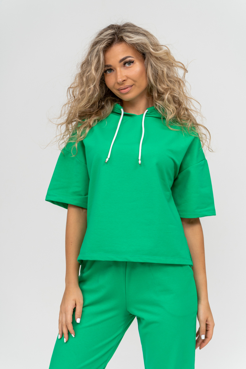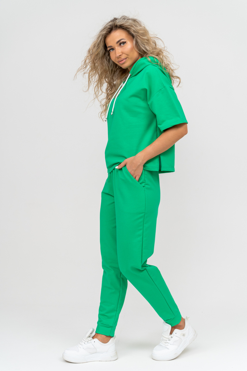 Женский костюм выполнен из футера высокого качества с хлопком и небольшим добавлением полиэстера и лайкры, что позволяет изделию не скатываться и оставлять идеальный внешний вид на долгое время. Костюм состоит из толстовки и брюк. Толстовка с капюшоном и шнурком. Линия плеча спущена, рукав укороченный, по бокам имеются небольшие разрезы. Брюки представленны с вместительными боковыми карманами. Манжеты брюк выполнены из основного материала, а пояс на специализированной поясной машине, что делает швы ровными и качественными. Свободный крой прекрасно будет смотреться на дамах с любыми формами. Костюм такого плана представлен в широкой размерной сетке, что позволяет выбрать его как девушке, так и женщине. Однотонный костюм модных расцветок будет удачным выбором для поездок в отпуск, на пикник, для школы, для активного отдыха и прогулок по городу. Будет гармонично сочетаться как с кроссовками, так и с туфлями, балетками или босоножками. Используя эту модель в качестве домашнего костюма, Вы поймёте, что это именно